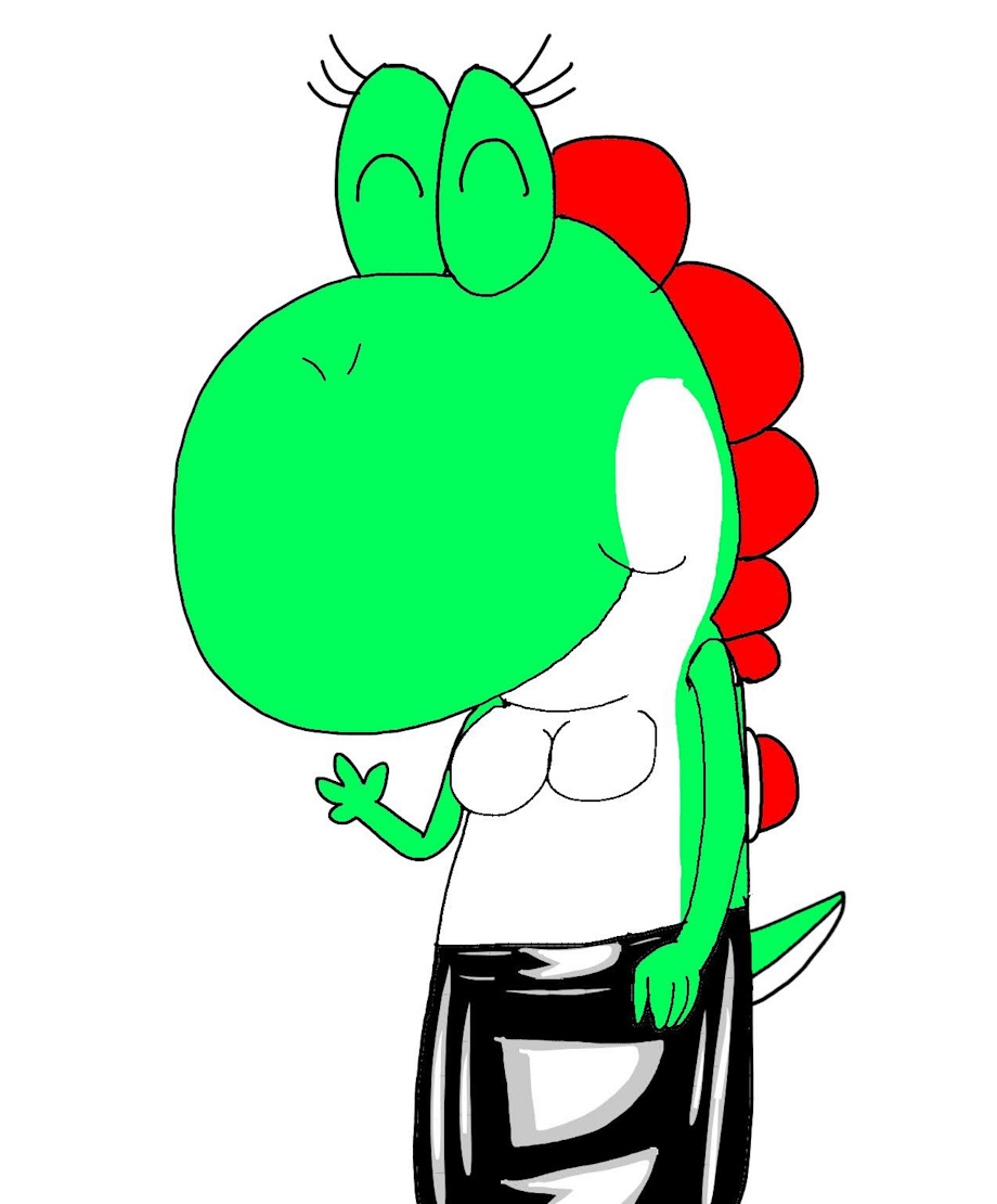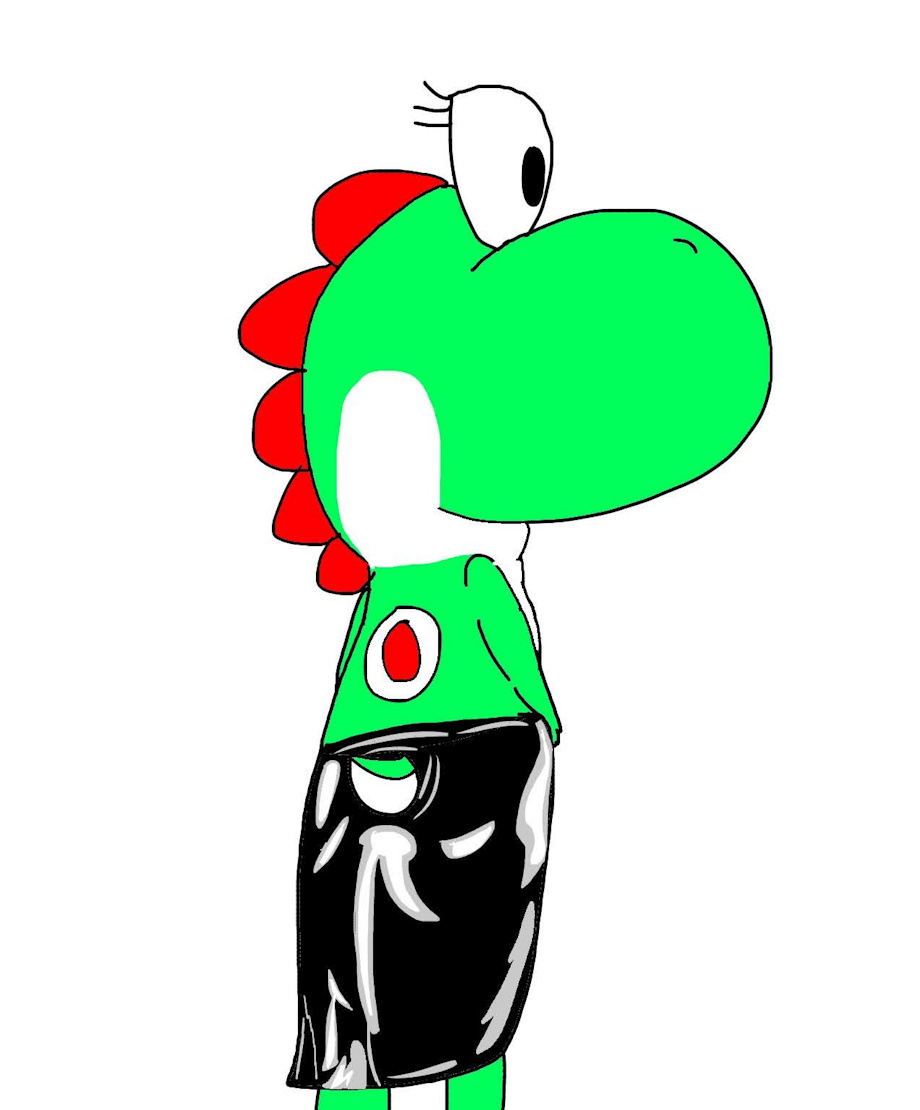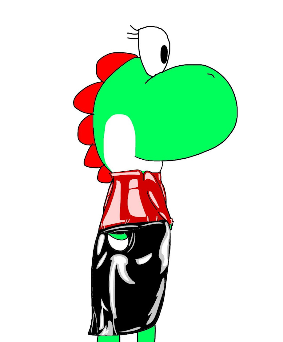 Clothes: Red leather jacket, Black long leather skirt, black leather heels