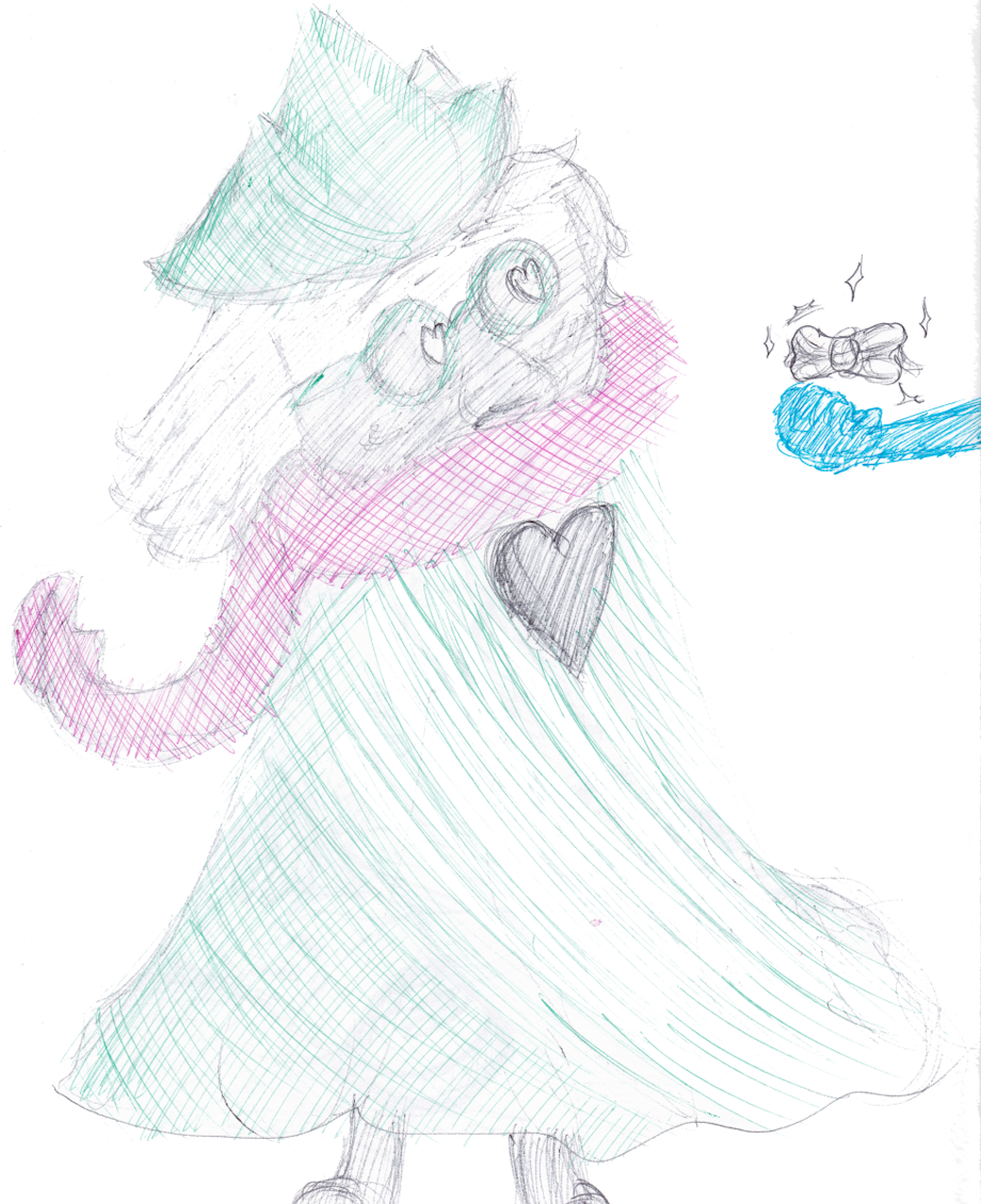 A very rushed sketch, drew Ralsei from memory just because the first thing that came to mind with the word ornament at the time was giving him the white bow! It was cute as hell, and I had just played Delta Rune recently.