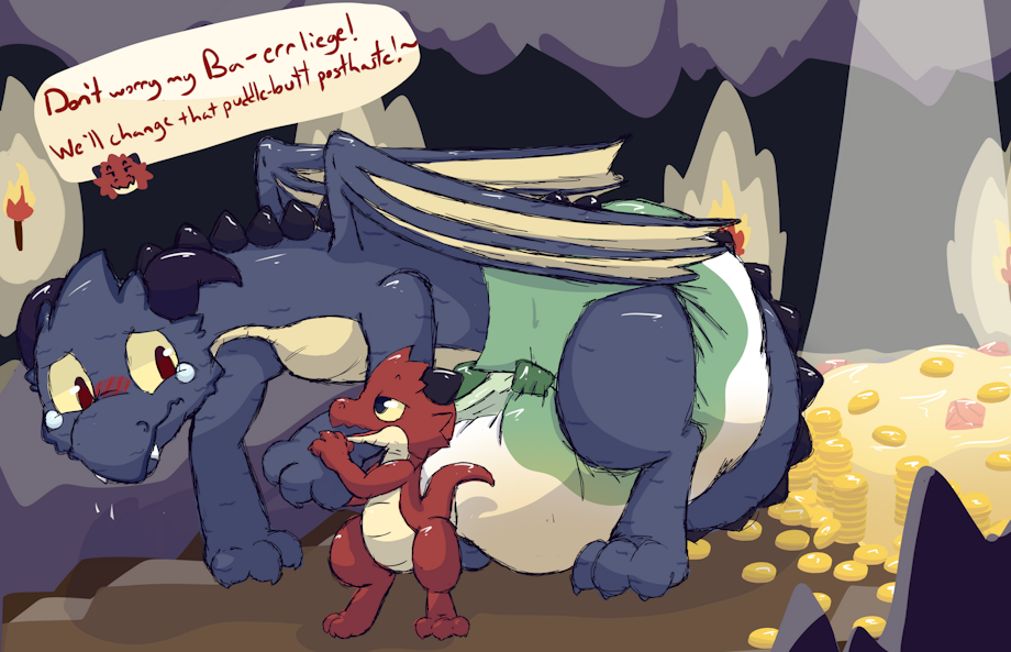 Although at this rate he'll have to change his gold hoard for a pamper and plushie hoard~ =v=