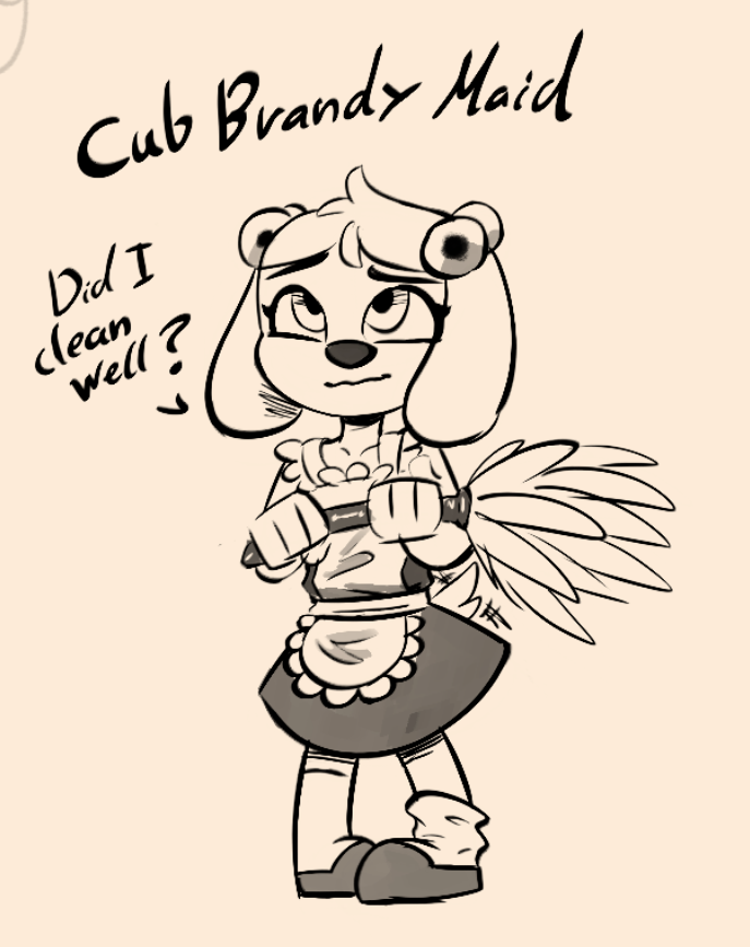 I have a story finally done for her and some other art not really connected to it so I wanted to at least post the references, and an up-skirt for fun, before I get to the other parts. Maid Brandy has a lot of the same teenage snark but deep down is quite professional and cares for her family quite a bit. Her puppy version is a lot more shy and awkward, really adorably sweet.