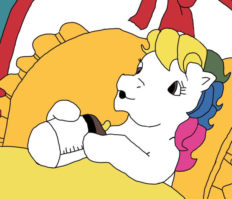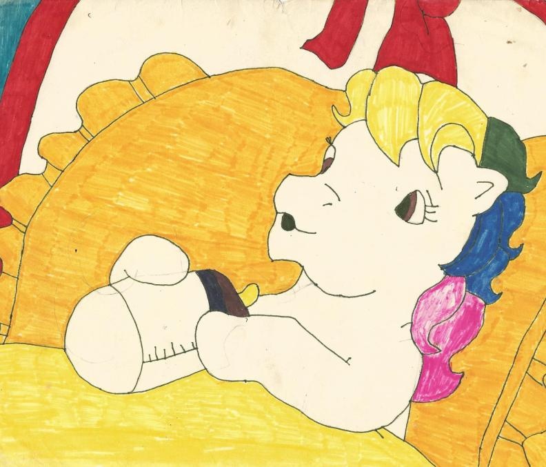 This picture is from a long time ago when I first started doing any drawing for myself. Waay back before digital art was common. I decided recently to attempt to touch up some of my pictures and this is the first one done. Included is the original hand drawn and marker-colored picture that i originally posted on FA some time back. The picture itself is of a baby pony from the series My Little Pony Tales, which was still basically Gen1 Pony.