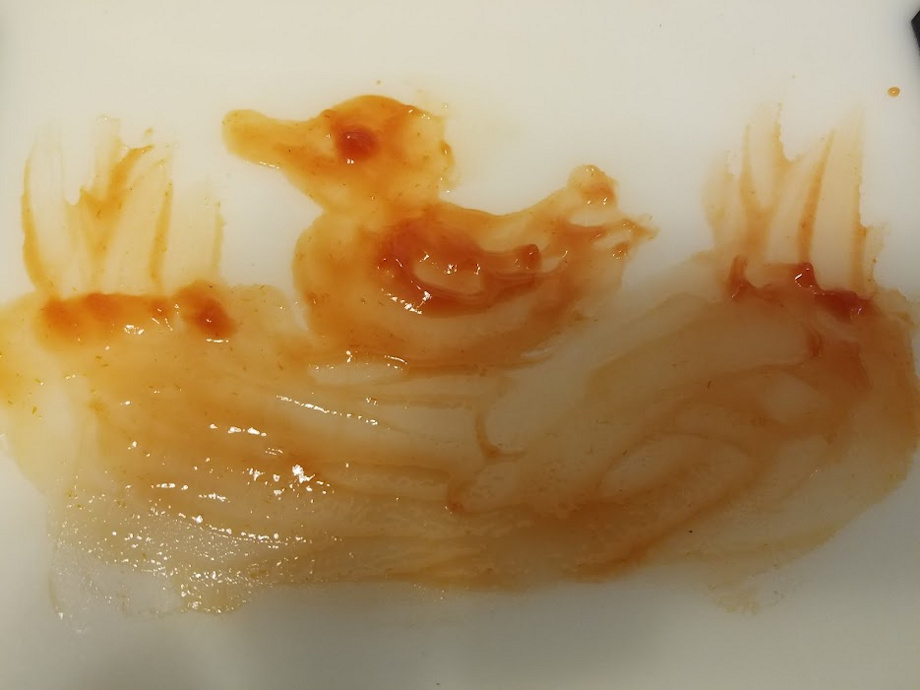 So here's a duck finger painting from ketchup.