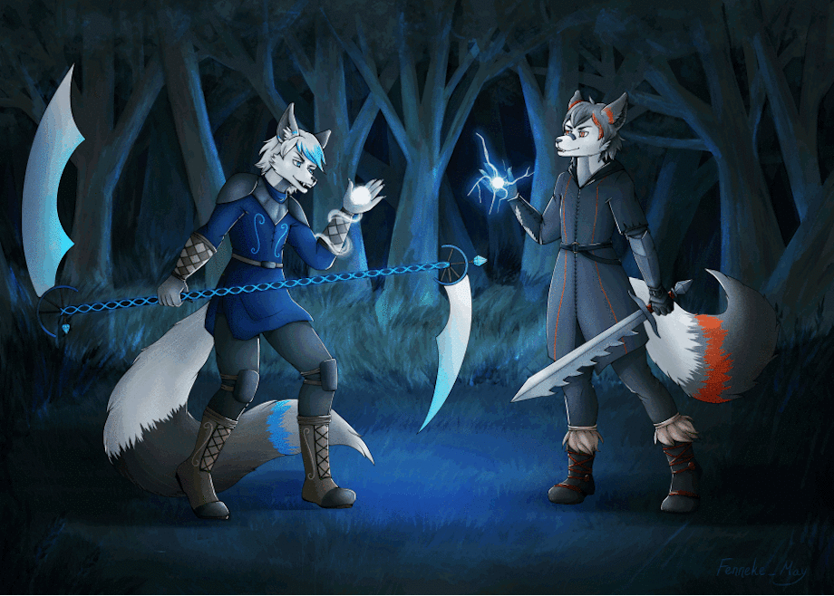 It was at this moment the leader realized something was off about Ion's ability, that there was something more going on that he just couldn't put his finger on yet, but now without the full crowd of his men around, he could see the truth, that there were actually two Ions that seamed to be doing the attacking, it was not an afterimage. "A twin?" the leader thought, no he was sure it was only Ion that was walking through the town, that there was only one Hunter on their tail, it had to be something more in the mystic variety. "A cone then, he can conjure a clone....." the leader continued, but the way his was working is impossible, there is no mystic power in this world that can conjure a clone that can do what this Hunter's was doing. "Well, maybe that is because you don't understand the forces you are dealing with" the leader could suddenly hear Ion saying to him from behind, almost like he was inside his head and reading his thoughts. The leader paused for a moment, shocked at Ion's sudden appearance at him since he seamed to be actively avoiding him during the battle and after composing himself, he took a closer look at the clone that finished cutting down a large group of his men and was now slowly walking towards him. He could see it now, they almost looked the same but there were a few differences, most notable the ears were a bit larger and the eyes were blue instead of orange, otherwise the clone looked exactly the same. It was not another Hunter that had similar characteristics as Ion, as he could not sense a living presence from this being, then it hit him as fear started to engulf his body, Ion was not some ordinary Hunter, he had a rare power of the forbidden, something that was just suppose to be a fairy tale, something that was said you have to cross over to the other side to obtain and only if they matched so well, Ion had a twin soul. "A familiar, ...you can call upon a second soul inside of you as a ...familiar" the leader quivery spoke as he turned his head towards the "real" Ion. Ion then smiled before vanishing and suddenly appearing directly in front of the leader, grabbing his neck, fully immobilizing him. Any of his remaining men in the square now just froze now in fear at their leader's capture, as the blue eyed familiar now also stood next to the real Ion, with them both looking in to the leader's eyes full of fright. "So you really do know about the forbidden secretes of this world, I thought you were just a pawn, blabbering on about a secrete power your 'masters' have, but I have to give you more credit then that" Ion spoke. "They didn't tell me much, only enough to make me help keep people like you off their backs" the leader replied, struggling a bit from Ion's grasp, "I... I can make you a deal, you let us go and I will tell you where they are hiding, we can even be your eyes and ears on the inside."