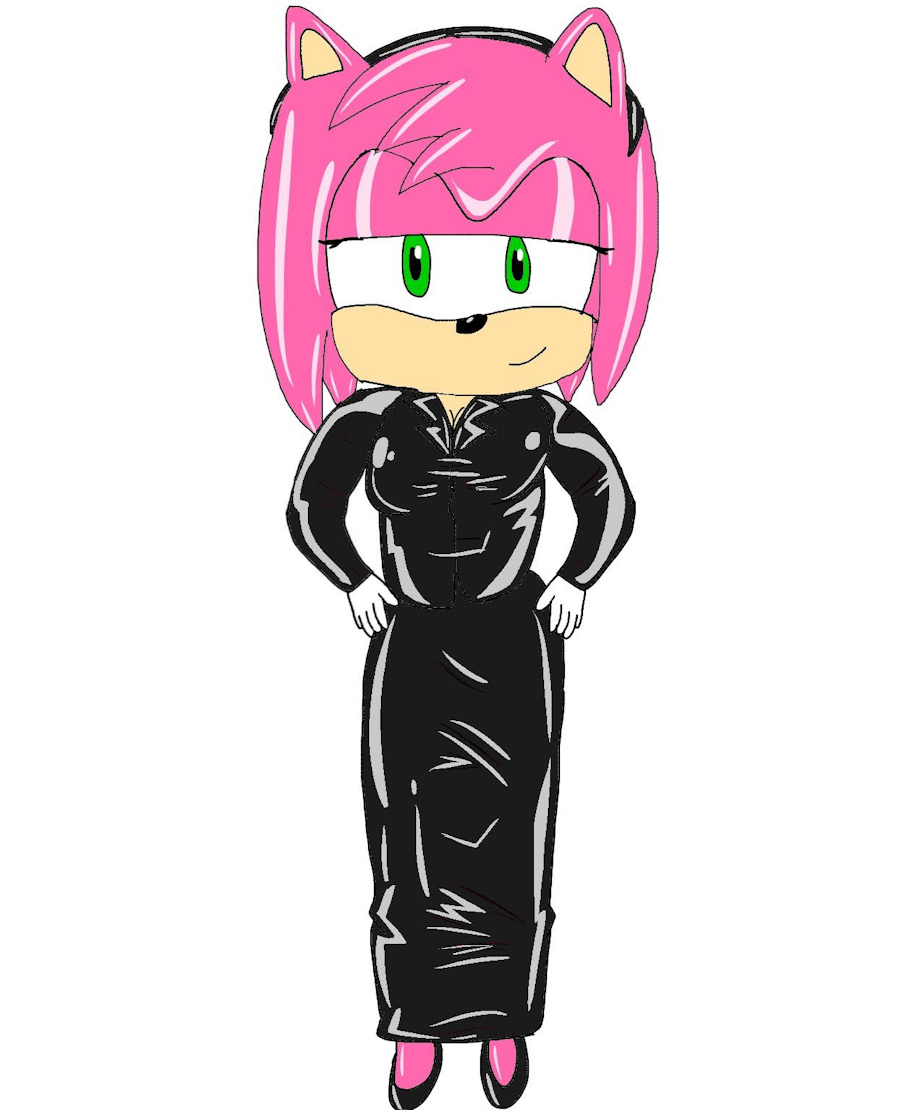 Amy Rose as a businesswoman with her latex jacket and latex hobbleskirt