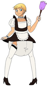 He said as he pulled the French maid outfit over Alex and then pulled it down. Once Alex was in his maid outfit He couldn't help but grin. The black and white classic french maid outfit did look cute on him as Alex blushed trying but failing to use the front of the maid outfit to cover his diaper but there was no way the short skirt would cover his diaper.