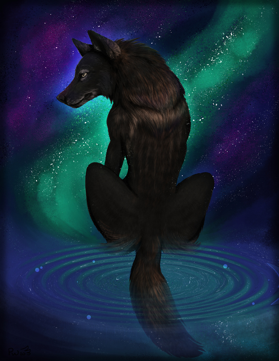 A personal piece <3 I wanted to capture that "connected to the cosmos" feeling. So I decided to draw a black phase wolf to contrast the stereotypical darkness of space. Instead, it's colorful and bright. One of the rare times I was struck with the inspiration to draw until 1am.