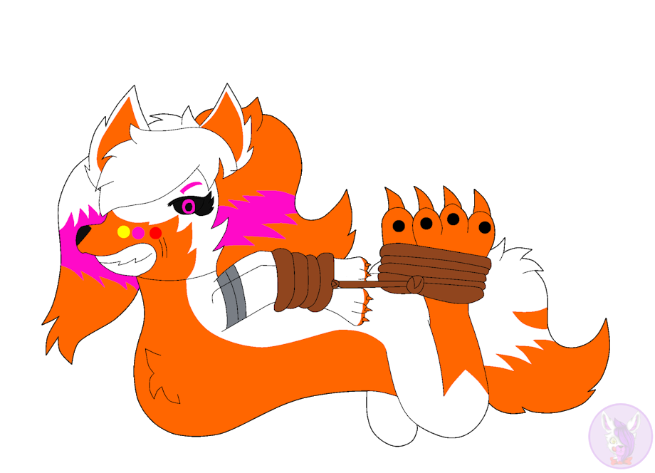 After Mangline and his sisters rescued Skyller and Mangled from those vicious and depraved foxes, Mangline and his sisters and Mangled and Skyller return to the pizzeria. That same night some foxes found out that a White German Shepherd had kicked the ass of the perverted foxes that had put the 2 furros Skyller and Mangled for sale, so they decided to look for Mangline to kidnap her and put her up for sale. They go to Mangled's pizzeria and see that Mangline was alone and asleep, suddenly they enter Mangline's room and from so much struggle they manage to put the White German Shepherd to sleep. In the same room they tie her up, gag her with a Ball-Gag and leave her feet untied, since after tying her up a bit to deprive her of her freedom, they abused her while she was sleeping and then they took her to their territory (What is the Poisoned Spore Alliance) and they put it up for sale, Mangline immediately wakes up and sees that it is very well tied and tries to ask for help but could not because his muzzle was tied, and the ball-gag was so tight, Mangline pulled out a few drops of slime. Some foxes come and see Mangline, when they approach her they rape her in public and while she was making small moans and almost crying, the foxes faster kissed her and mistreated her a little.