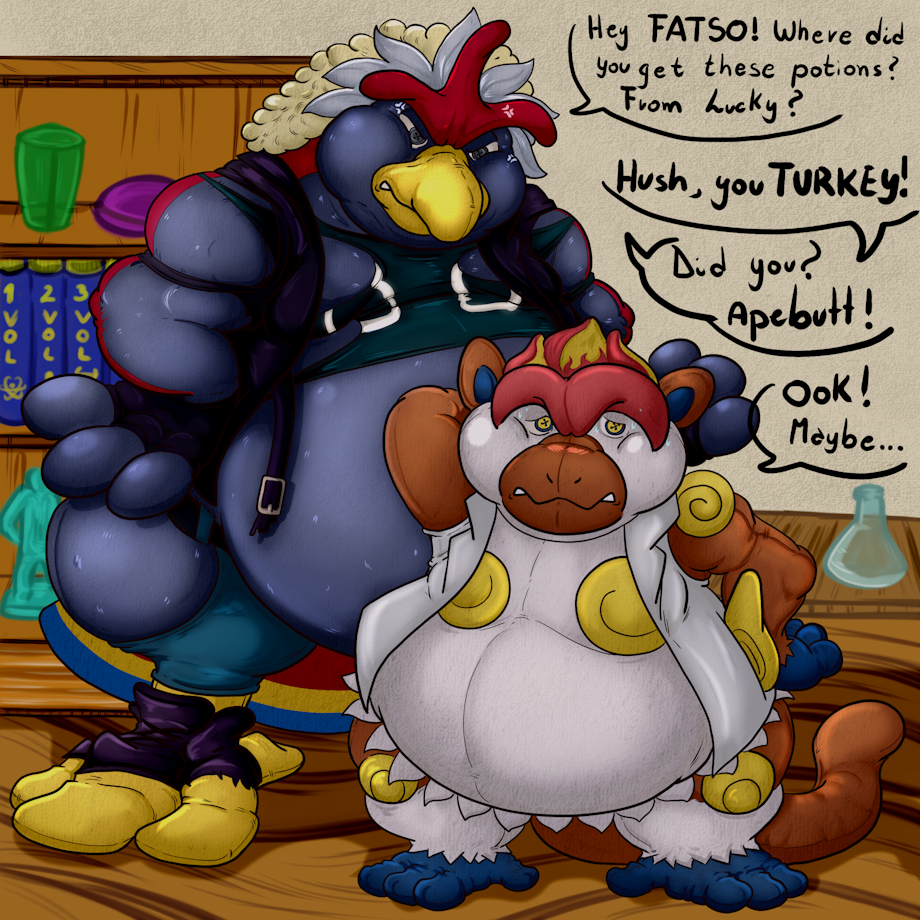 My mischievous friend Jam "borrowed" some potions from Lucky, and they transformed me into a Braviary plush and him into an Infernape plush.! As you can see I'm a bit angry with him and I'll never let him hear the end of it!
