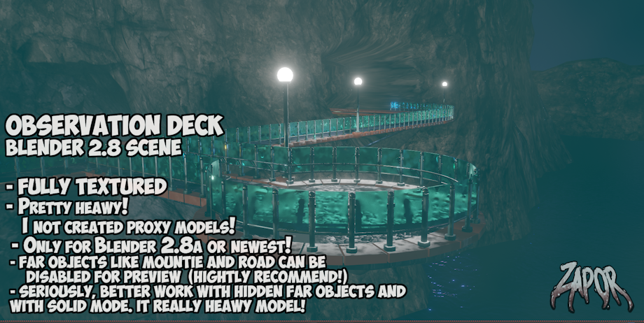 Well. If anyone remember a "Angel food" animation (My first in blender btw!), there been scene modelled by me from zero. So, i choosed share it for my dear Supporters (because i forgot do it long time ago) There some mess with modifiers (which i shouldn`t appeal, but now i cannot reduse polycount) so it can be a bit heavy for animating, but easy for rendering because it don`t require appealing modifiers)