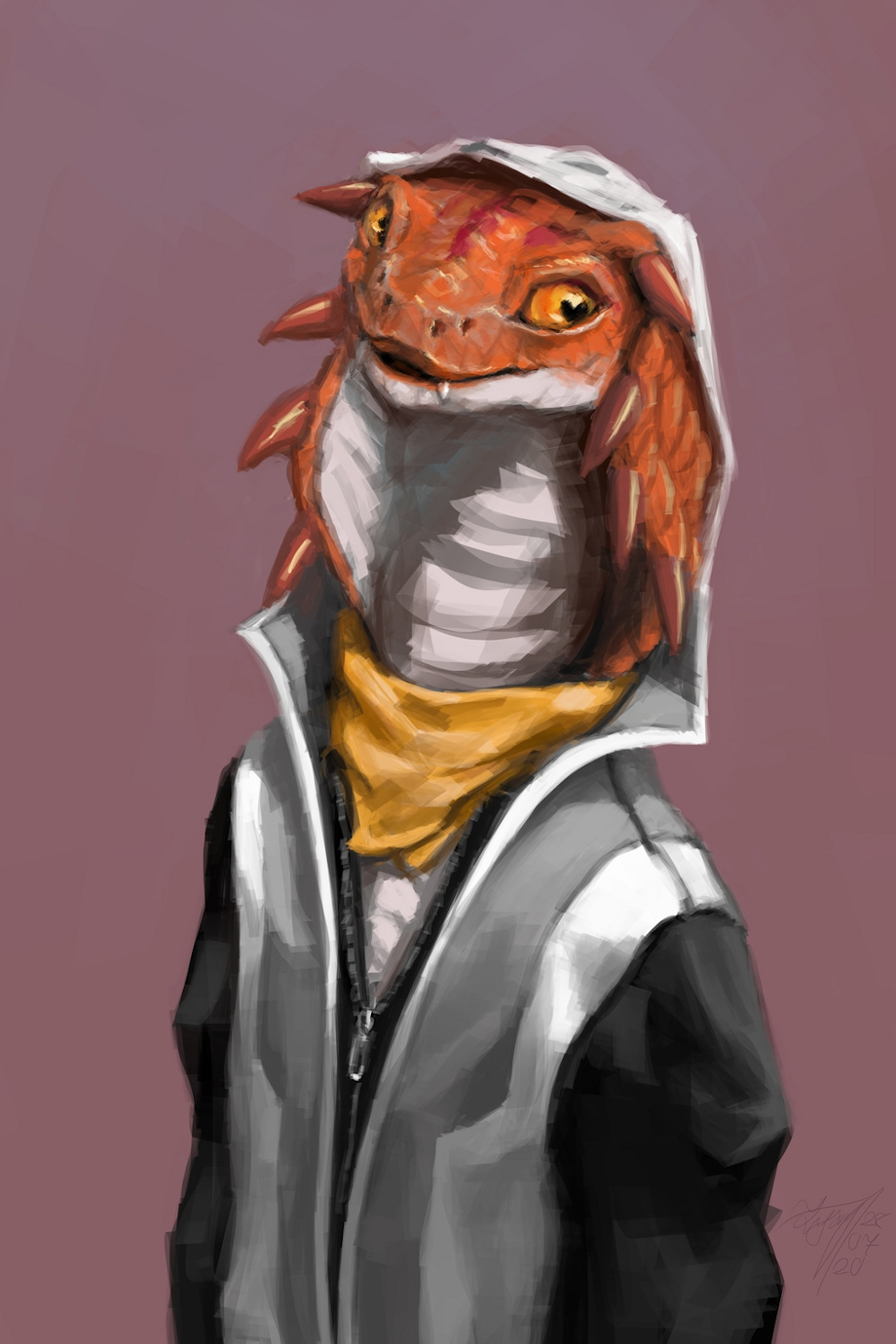 This is painting I made for Izrez. I like the little snake guy he occasionally draws and thought it would make for a nice surprise to paint him while also getting an opportun to experiment a bit with my own style. The more I learn about art, the clearer the difference between real and photo realistic styles become. It's good to sometimes focus on doing more with less instead. It takes so little to make great art. (: