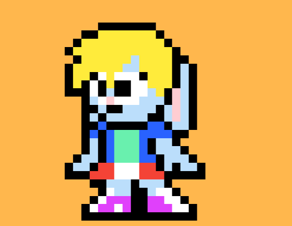 I know I said I couldn't upload for a bit because of being in the midst of moving files and crap, (kinda got that done...) but... I can kinda upload here and there, so.... This is Candy. A rabbit girl who's named that because she's sweet. (ba-dum tiss...) Along with this 8 bit rendition of her for color reasons, and she has someone named "Sugar" because reasons coming later.