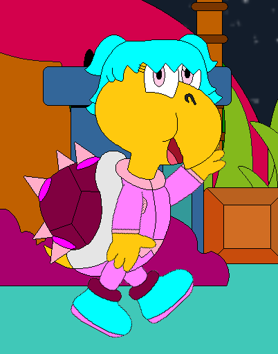 Tracy is a very girly koopa, she likes everything like normal girls do. She is very kind, she may be girly. But she doesn't act like the popular girls. She too kind to be like one of them. She is very cute, she so pretty that everyone always complatie her, because the way she dress. She likes that. She is very caring, she may be girly, but she cares deeply about her sisters and her family. She will not let nothing bad happen to them. She gets out of her comfort zone, to help her siblings when they need her. She is very careful. She's very very nice, just because she's girley. She is very nice. And she is very friendly, she love making more friends. It makes her very happy.