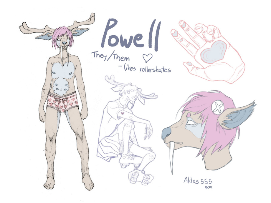 Their antlers always have velvet, fur is light pastel brown, nose, ears, pawpads and tummy are light blue, pawpads are in shape of heart, pink short hair.