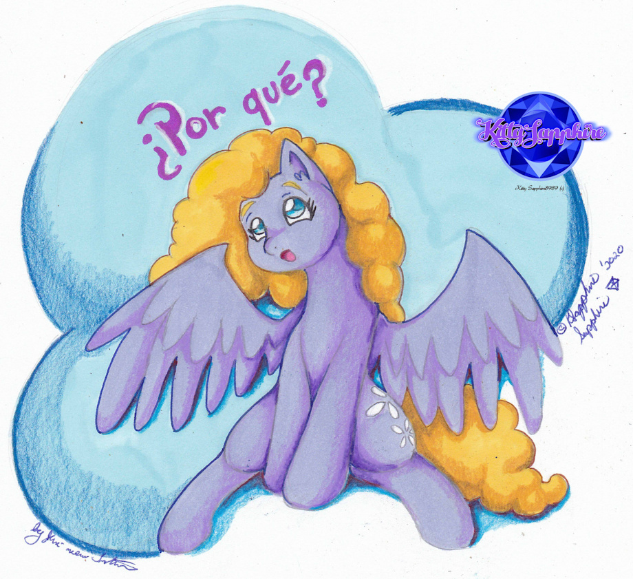This picture is hard to explain but I will try my best anyway. Simply enough, I want to do something random. I took one of the ponies from the older generation I believe its gen 2 Baby Blossom and gave her a more modern spin. However, as I was drawing and proceeded to write Por Que? at the top. (Since this color scheme and of design Baby Blossom is Peruvian exclusive.) I started to think to myself. Why? To be completely honest for the past day or so, I had the sudden burst of 'The Sad' and started to feel hints of inattiqucies towards my position life, my passion as an otaku, love and skill level as an artist and well finally me as a person. Whether its a physically, emotional or mental, the feeling of 'lack' seems to be quite prevelent. So at times I have asked my self questions regarding these unfortunate and damanging feelings. I asked myself Why do I do these things and Why should it matter? (Now, this personally how I handle things not nessarily goes for everybody.) But I have to remind myself Why I feel this way and what is the purpose of pushing forward in times like these. Also 'just because or I don't know...' for me is not a very good answer. If anything, remembering my love for the geek culture and art, learning to love myself far removed from what I once was and care for the people that close around me is worth remembering. Using those memories, positive ones to pushing threw those times of negative vibes about yourself. I guess this picture is not so random huh?
