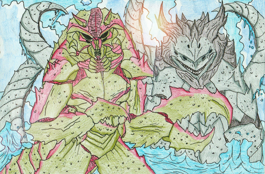 • After the long research of the history of Atlantis and the kaijus Gamera & Gyoas the team discovered more kaijus connected to the mysteries of Atlantis. The seven seas are protected by 7 kaijus both Gamera and Gyoas were one of them as their two recently discovered far east, the Kaijus were dubbed Ebriah and Karathen. Strangely history spoke of these two together believing the fact their is a symbiotic relation between the two.