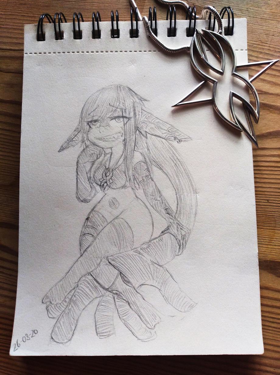 TheHeroOfDarkness came by for a visit these days, they left a couple days ago, but amongst some of the stuff we got to do while he was here there was this sketch of Imp Tiamat riding her hand hair, which you may recognize from the several times I've drawn her: