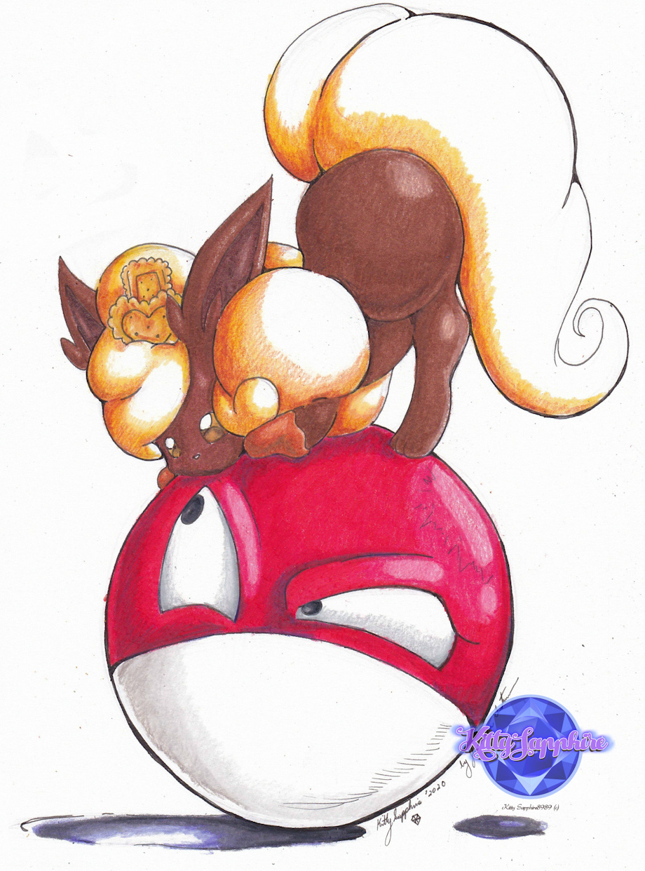 Fun fanart that embarassing my love for pokemon. Been practicing on expressions and enteractions with characters. In this case, my OC pokemon Smoreon and her curiosity towards a certain dangerous fellow pokemon. But I thought it would be funny and cute.