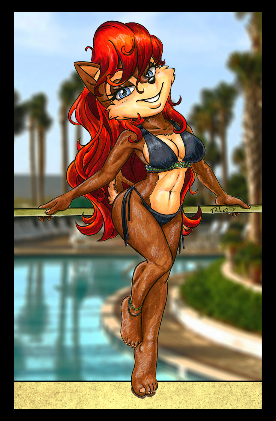 She looks gorgeous in that bikini and pose, and I love the colors too! 🥰😘