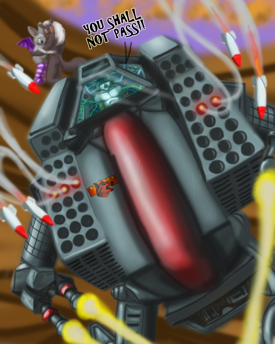 proving you shouldn't threaten a mech owner's friends...YOU SHALL NOT PASS!!!! Stumpy in cockpit, heh heh, wired into the mech