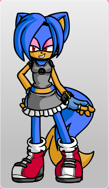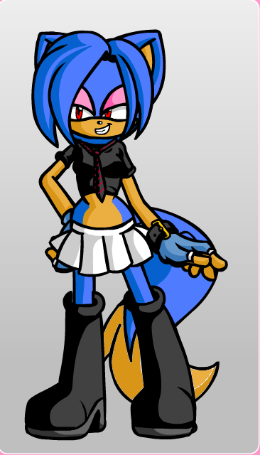Clara is a hot blue vixen fox with dark skin, red eyes, and pink eyelashes