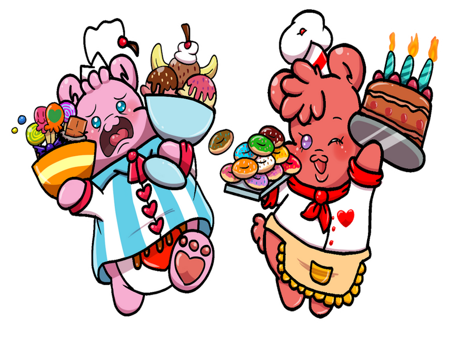 These are my OCs, Sugar Paw Bear (right) & Sweet Treat Bear (left). They are also first cousins