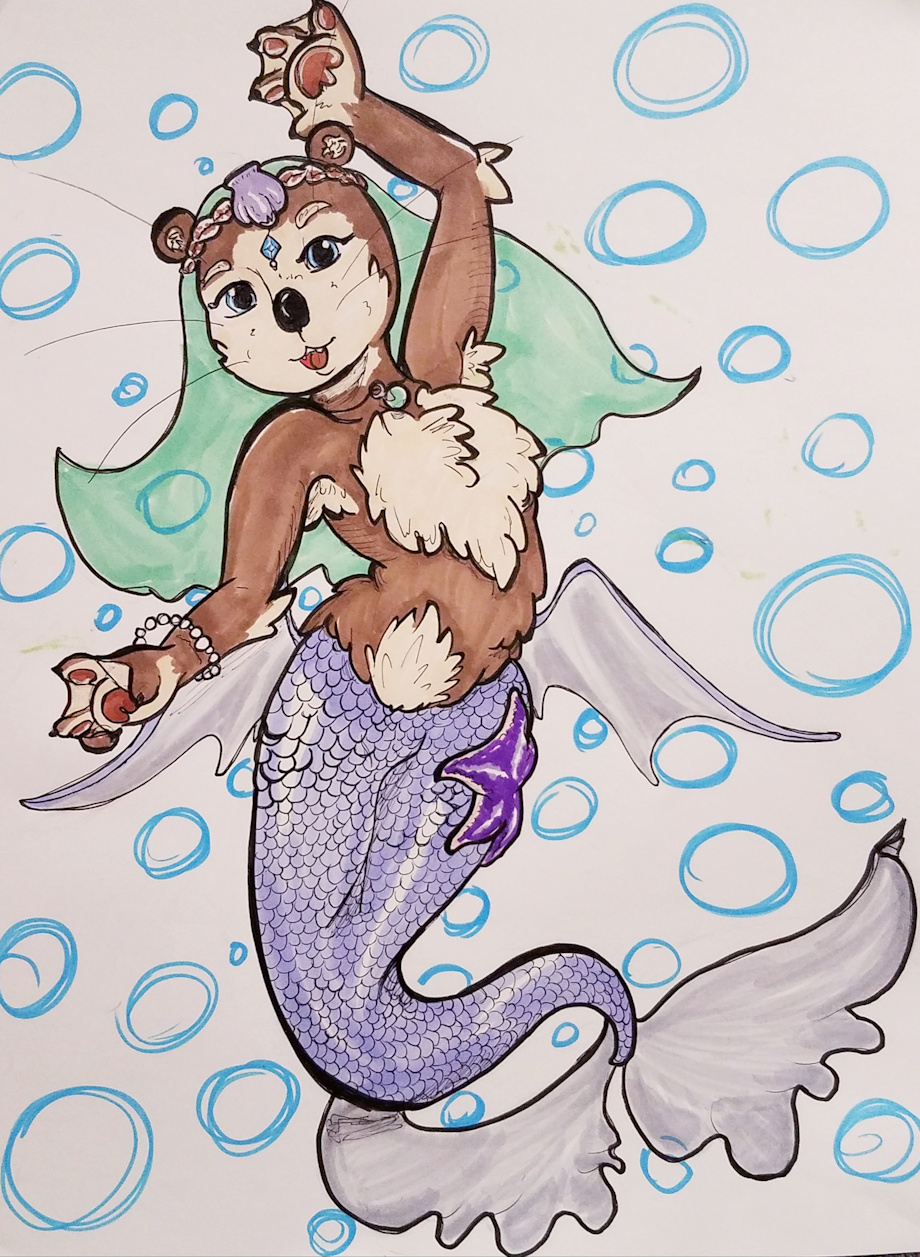 You got every detail just great, love the sheen of her scales and her floofy fur! A very original design, we definitely don't see enough sea otters, especially mermaid otters!