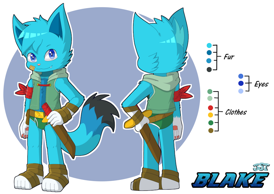 A green rogue feline who is known for speed and stealth. He wears a green hooded vest and is always in green underwear. He also has a red arm band and a bandage under his left eye.