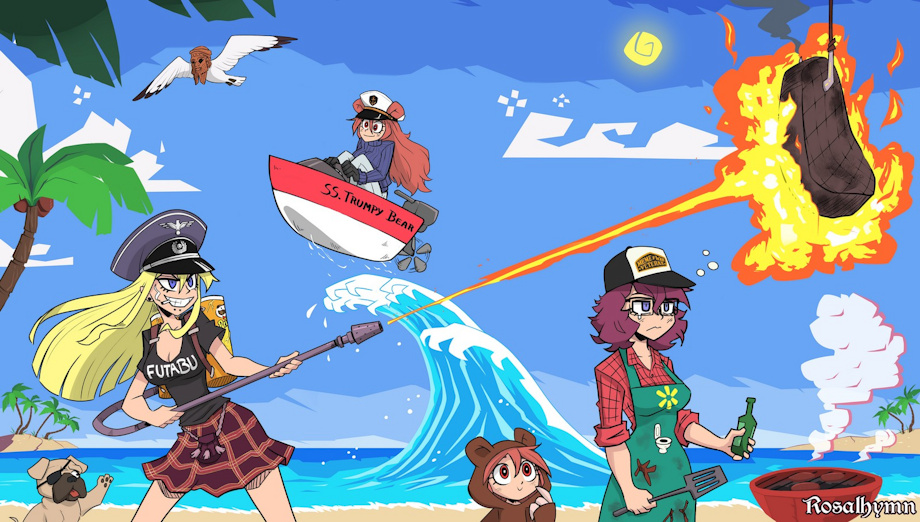 The Incredible Salt Mine is a youtube live podcast that i regularly watch. I transformed the hosts into girls (because why wouldn"t I ?), and added some memes / inside jokes from the show which resulted in this artwork! They accepted it as their new background!