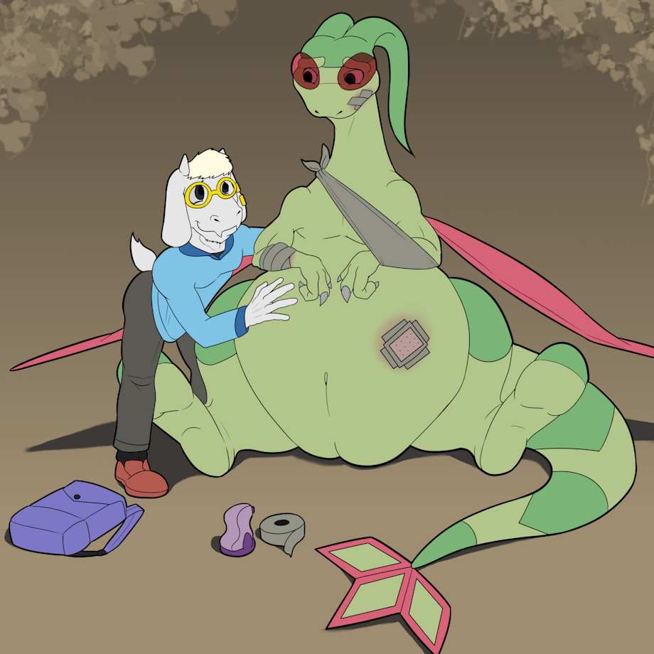 After a rough battle, Nekrahn does his best to keep his pokemon well taken care of before reaching the next Pokemon Center. Flygon is very lucky to have him as a caring Trainer.