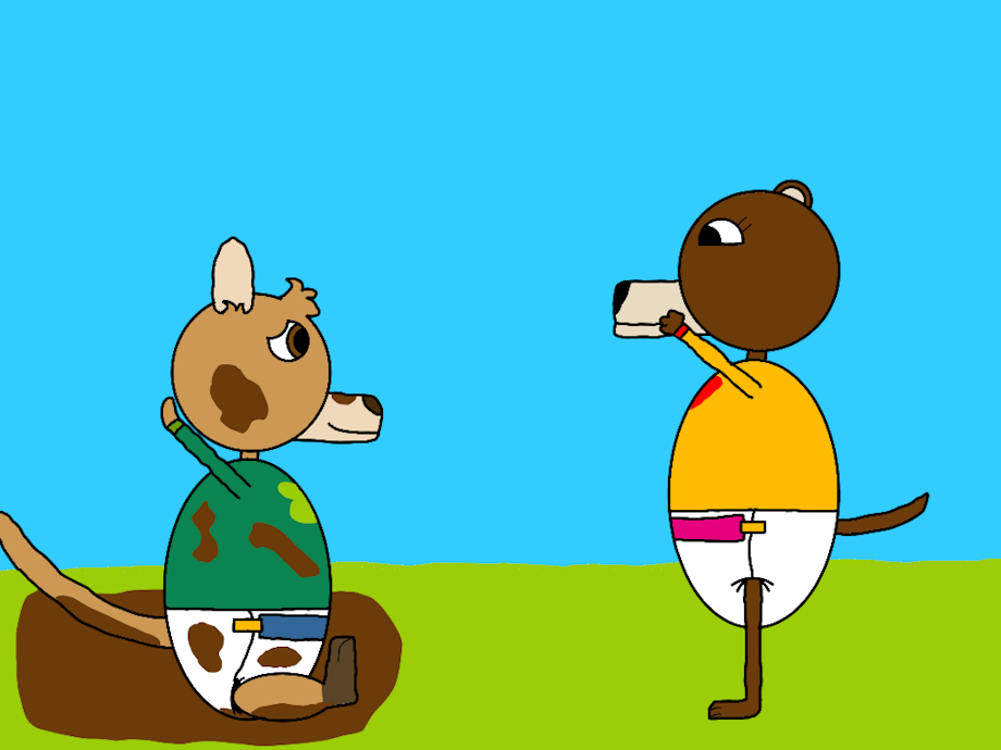 Joey was practicing his jumping in his cousin's backyard on a rather cool day. it rained the night before which created some mud puddles which he thought he could avoid, but when he attempted a big jump, he accidentally landed in one of them, getting himself all muddy as a result. Elise snicked a bit at the sight of her muddy cousin as Joey tried to explain his predicament to her. At least it was nothing a quick bath and a nice change of clothing couldn't fix.
