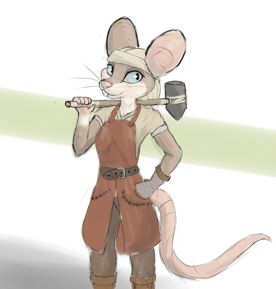 Mousesmith! Now, the question is is she tall as you or I, or does she have a tiny little blacksmith hovel, forging the finest blades from needles and nails, quenching cherry red steel in a thimble full of water?