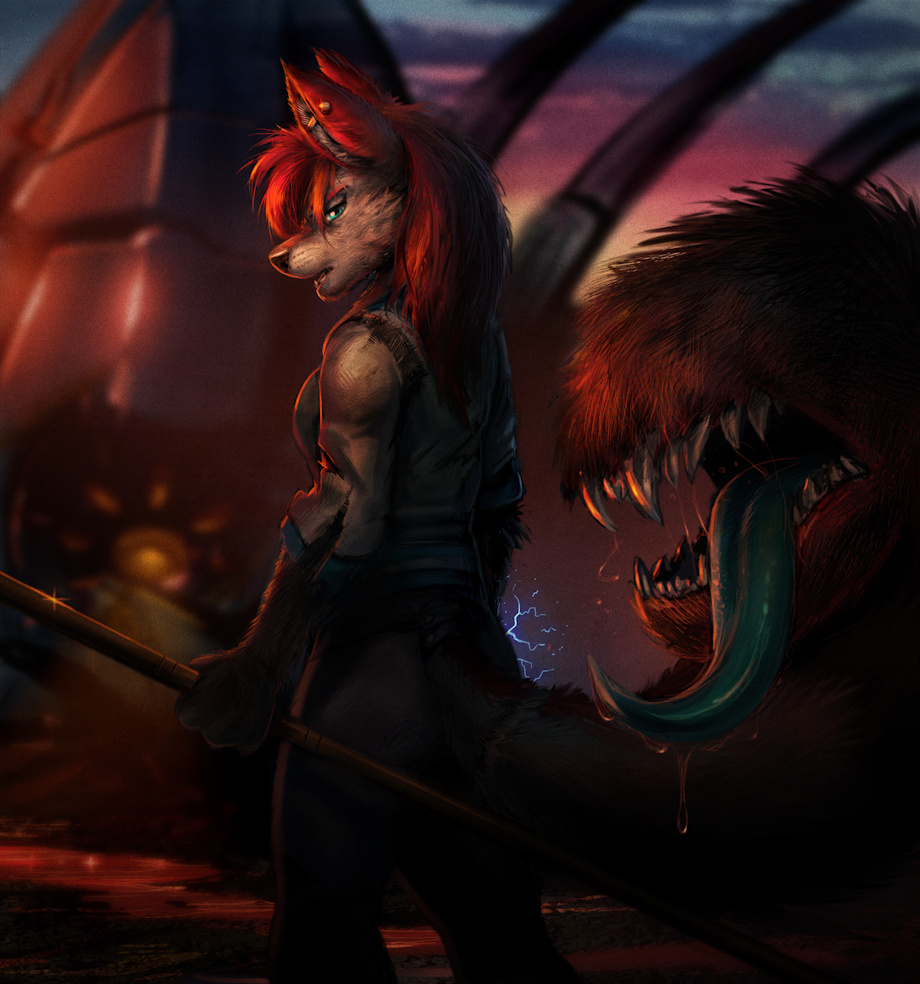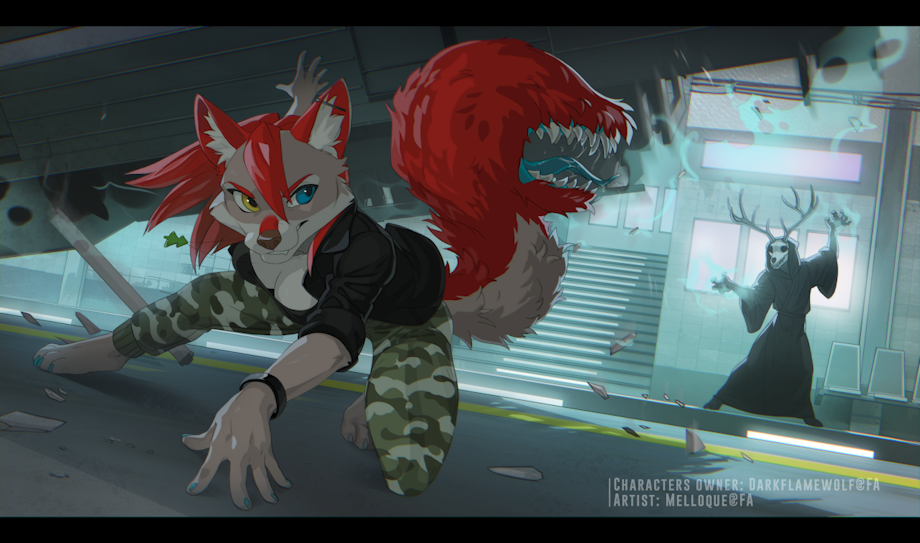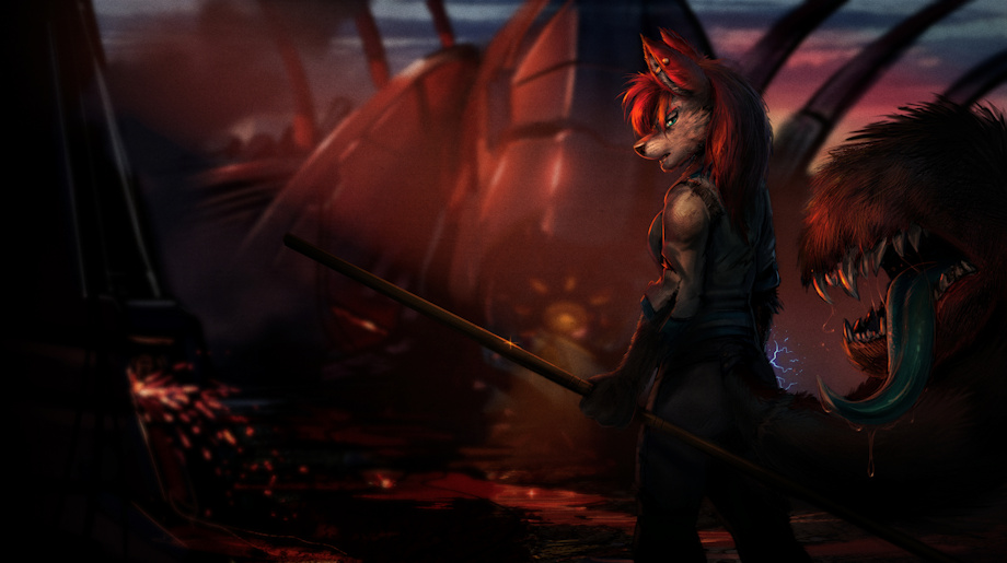You could say this image was three years in the making. I remember first pitching an idea to have Temiree paint Taylor in his unique style, but he was unsure about the tailmaw feature of her character. It took close to two years before he was able to get comfortable enough in his art that he could do the character justice. After approaching him again with an even better idea for her than my previous, two years later, he was finally on board and I entered queue. Eight months later, he began working on the piece and this was the final and ultimate result. Amazing, jaw-dropping and badass. This is Taylor at her best. She is not a fighter as we begin her books, but by the end of her series, she will have taken down grand behemoths of steam and steel. Her rise to being a bonafide superhero is inevitable. I also added in a few minor details of her character that some may not notice until later after her books are released, but I've already planned ahead regarding them based on when this specific scene happens later in her book series!