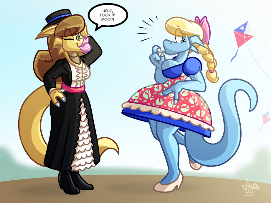 So here's Alice dressed as a huasa, a countryside chilean folk, and Rebecca also dressing as a huasa but a more formal variant.