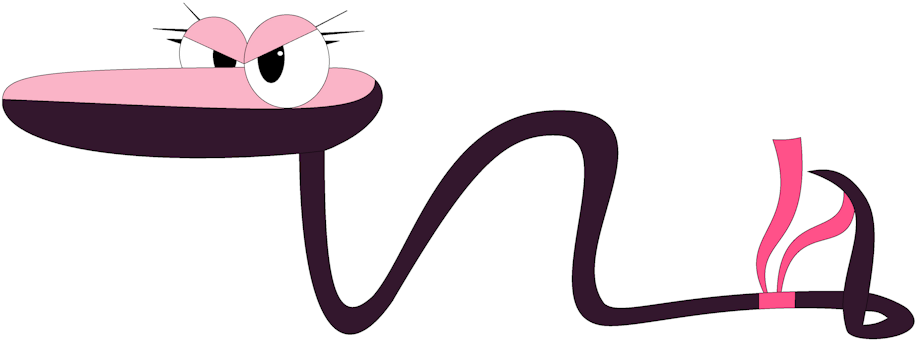 She is a pink snake with heart patterns on her and a darkened tip of her tail. She has beautiful eyes, a different nose from the other snakes, and a one-pointed forked tongue.