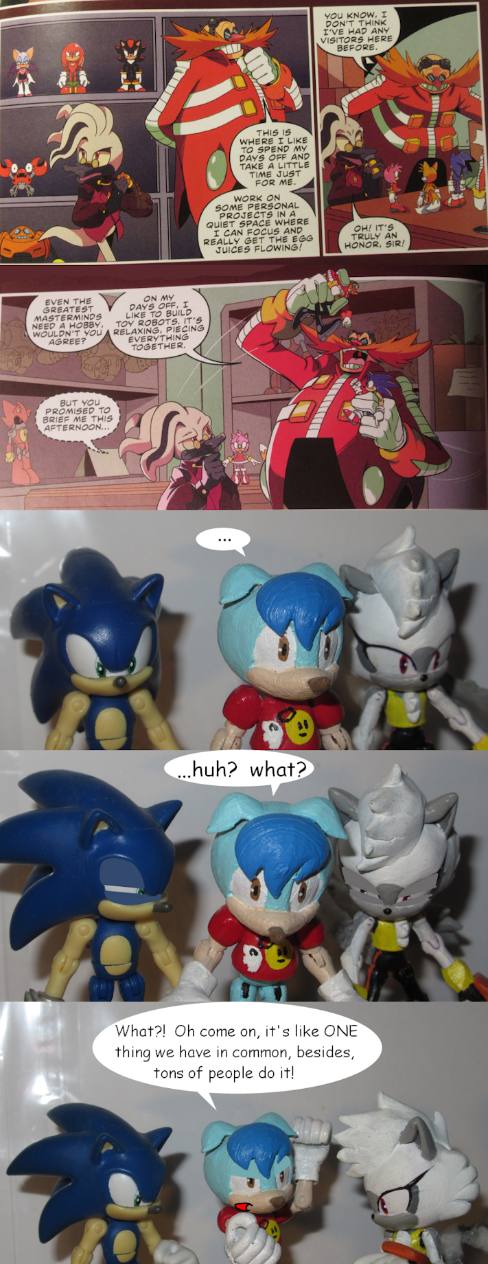 So, when you get to be an old weeb like me you find yourself indulging in a bunch of cheezy rom-com anime, and one of the more popular ones right now is "Uzaki-chan Wants to Hang Out," which is about the college life of a quiet loner with scary eyes and his big boobed friend who likes to drag him out of his shell and force him to be social. OF COURSE I would immediately associate them with Shadow and Rouge! So I screencapped some frames from the theme song and did a little doodling to join in with the memes. If you need a bit of context I also uploaded the unedited screencaps in the same format here: https://www.deviantart.com/wakeangel2001/art/Uzaki-chan...