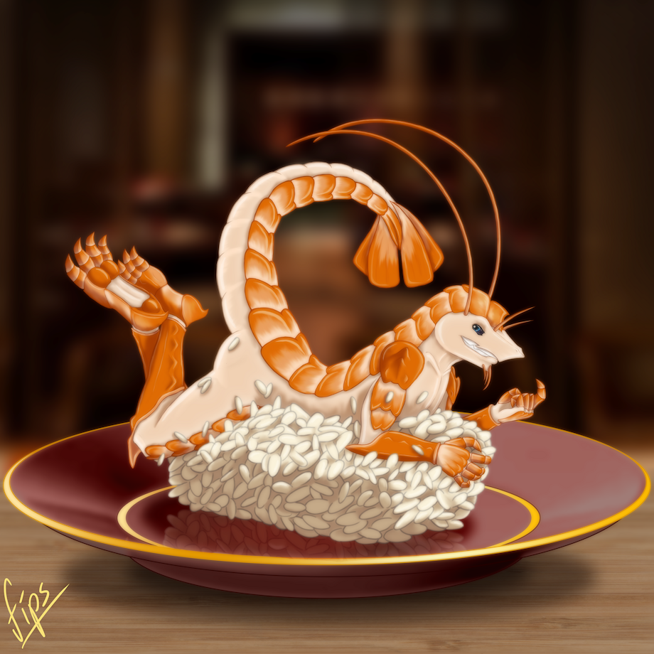 This was honestly really fun and I spent way too much time with it. Creating an anthropomorphic shrimp was a challenge I really enjoyed! ;D I used some stock photos for the background, but I also tried some new stuff while coloring the character. I'm actually really pleased with the result and... maybe there will be a few more of those sushi interpretations ;D I have a few ideas at least ^^