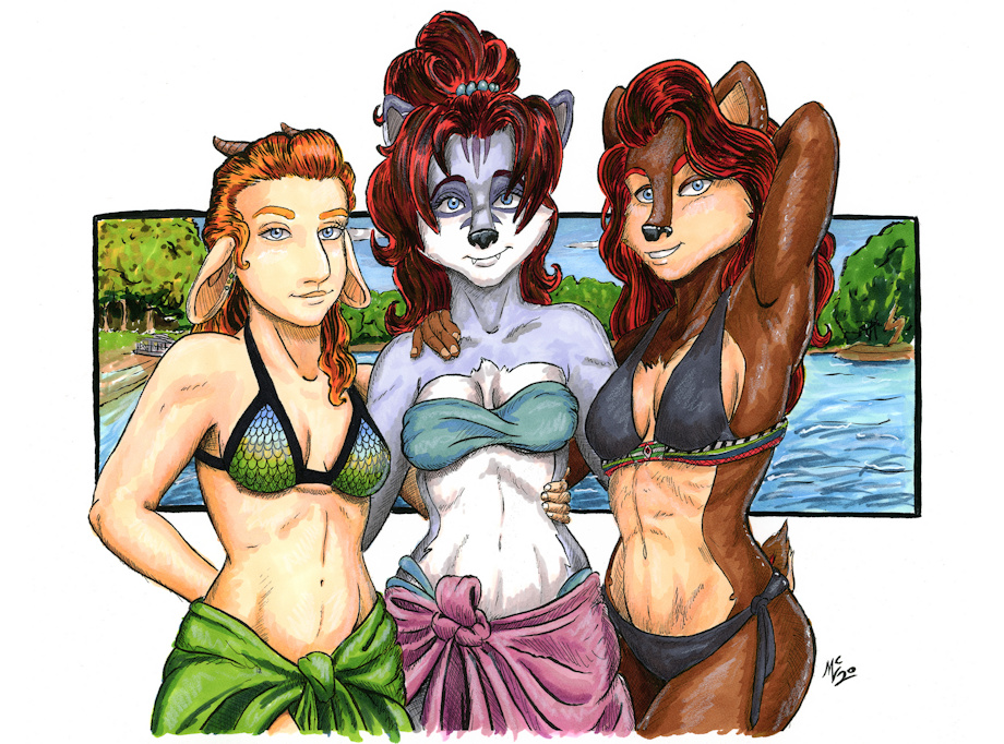 Little gift for my friend :iconMetalPandora: of her oc Raksha enjoying a nice day on the lake with Sally and Grace.