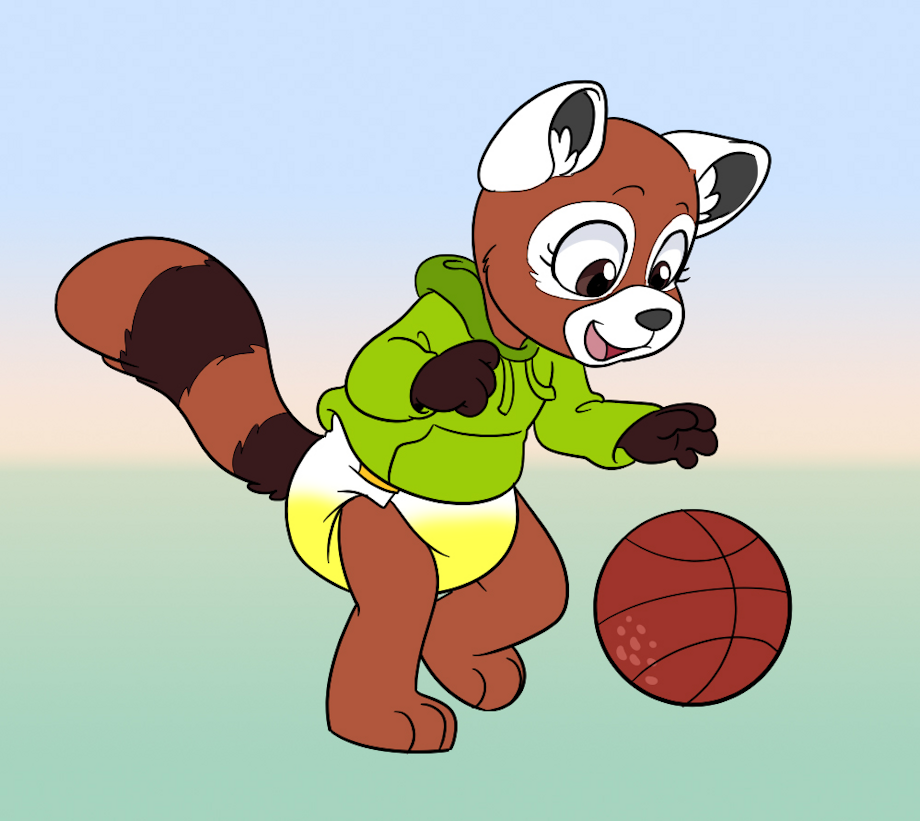 Ling Ling only has a short amount of time before the first snowfall comes, so she's making sure to get all caught up on her standard outdoor activities before the winter ones start. Ling Ling is just practicing her dribbling with her basketball out on her driveway since she strife's to be a good athlete someday.
