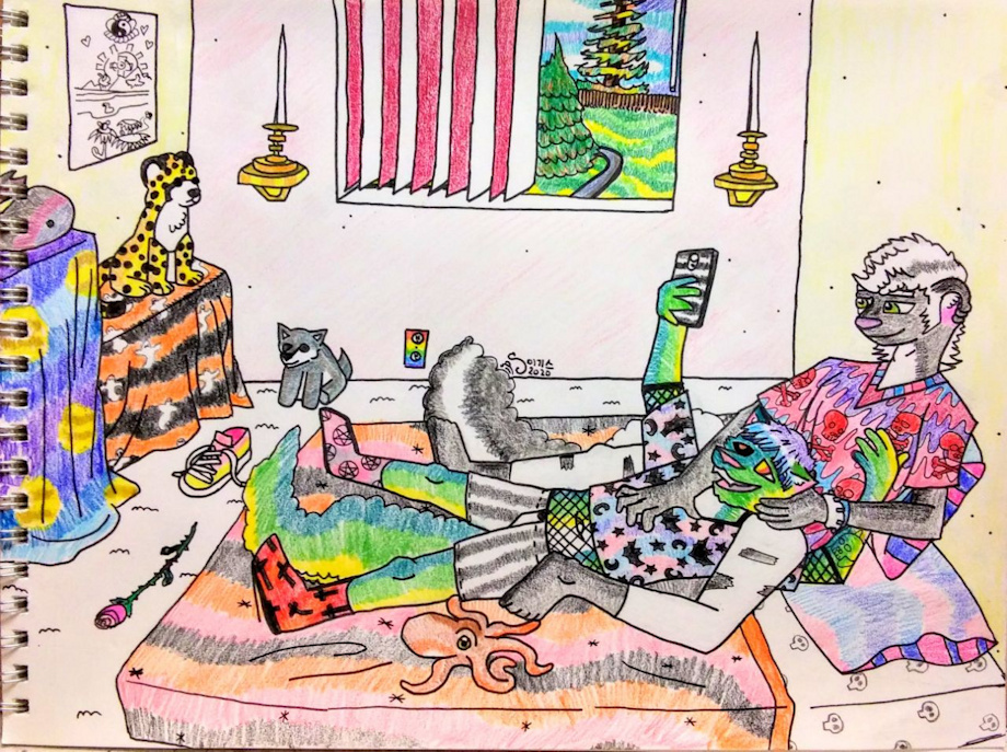 {On another note, the picture hanging in their room is actually a reproduction of an original work that I did based on Buddhist teachings, just fyi}