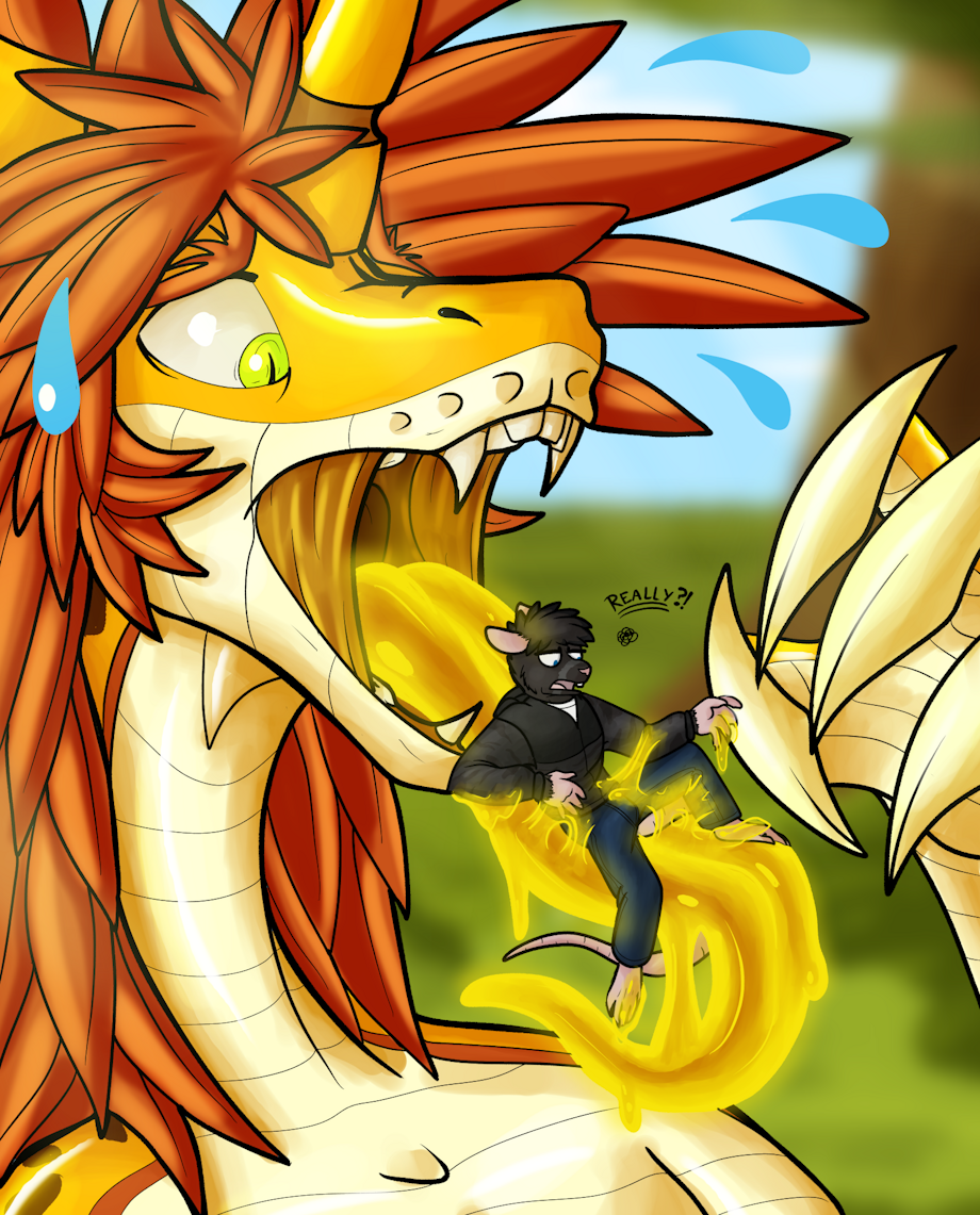This was a bit difficult since I'm not used to do mawshots and the like, and PineDX's style is really something else so it was hard to make the mawshot into my own style, but I think I managed more or less, and also gave this a needed upgrade to match my current looks!