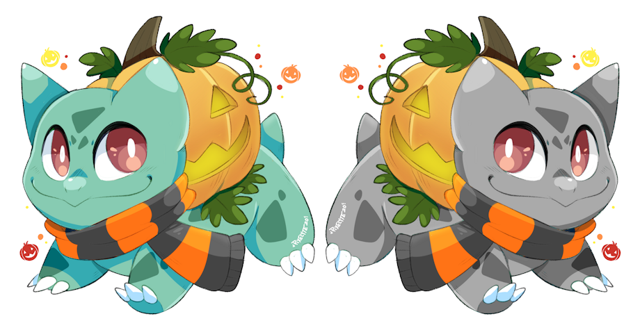 Hey guys I just finished the design for the October charm, a spooky themed Bulbasaur~