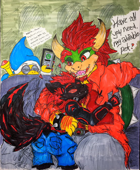 Bowser once again ignoring his business calls to cuddle with his adorable pet Kayla. Kayla is loving his musk and wagging her tail due to how close she is to her Daddy/Master