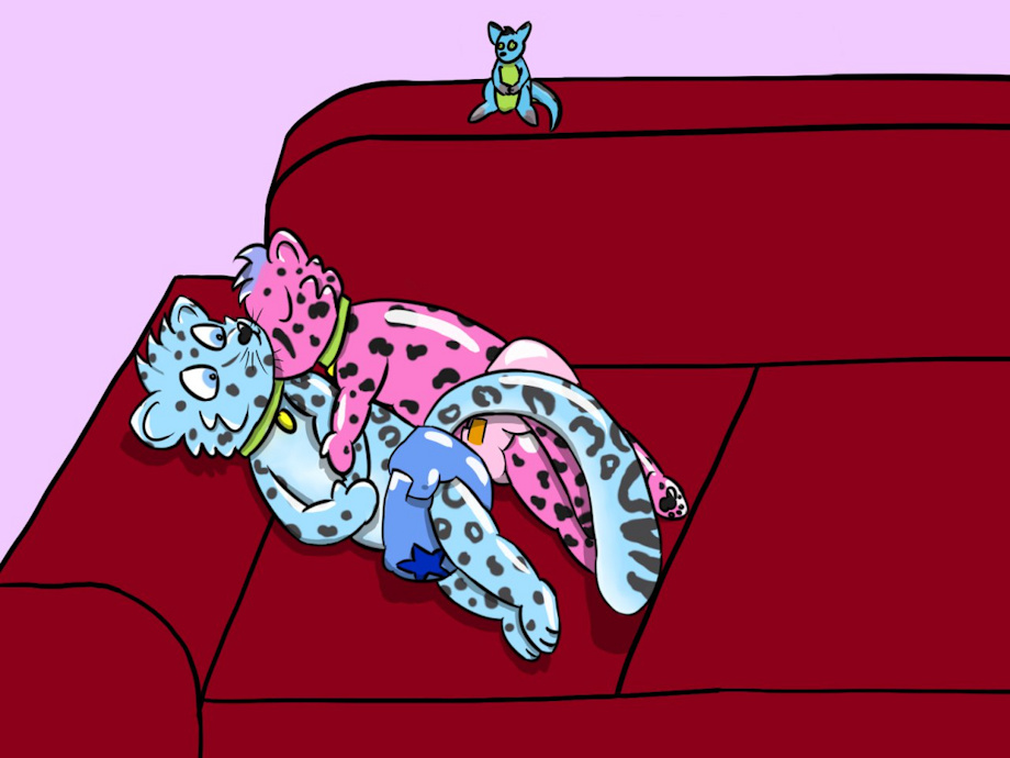 This here is Neil snuggling with his friend and foster brother Lien, who is a companion character to Neil owned by my grood boy GrooDeeAussieroo. He is a snow leopard instead of a cheetah. They say that cheetahs never prosper, but I'd say they're doing quite well together.