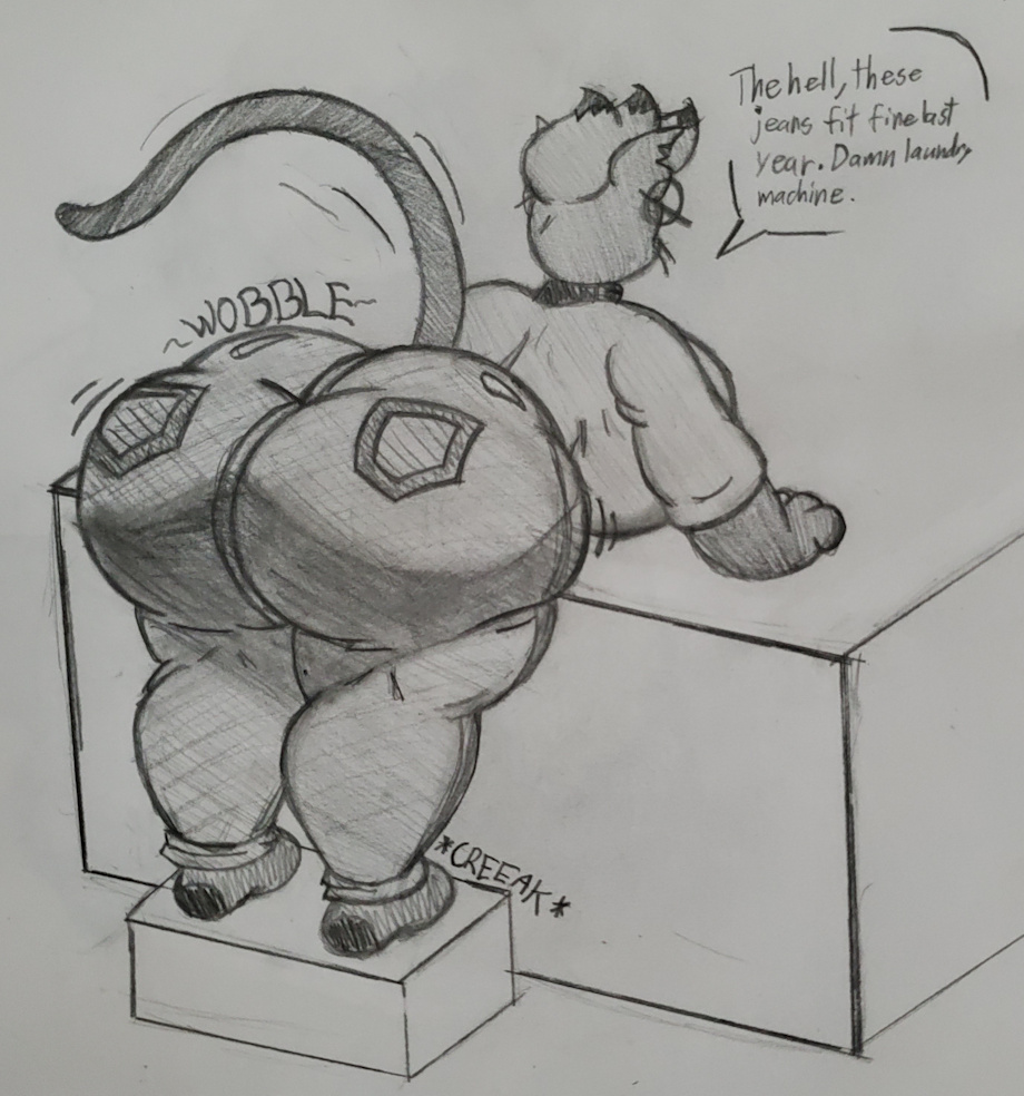 Mae's pants always seem to get tighter over time. Must be because of improper laundering
