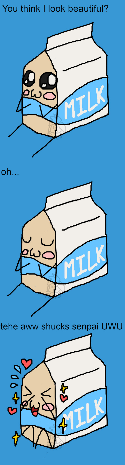 sad milk is a funny youtube channel and they have this little milk carton as their logo. this is a reference to their intro but with a twist ;3 I hope you like it whether you are a fan or not.