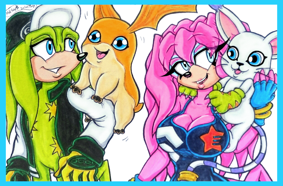Here's the finished coloured version of TodStar with Patamon, and Sky with Gatomon.