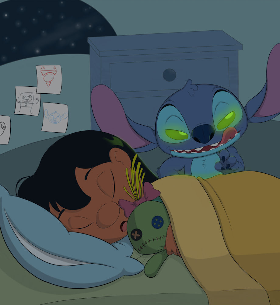 Okay! Here we have the first part of our tale. The winner of the last poll, by a huge margin was for Stitch to be sneaking into Lilo's room. Is it dangerous? Or Nice? That's for you to decide!