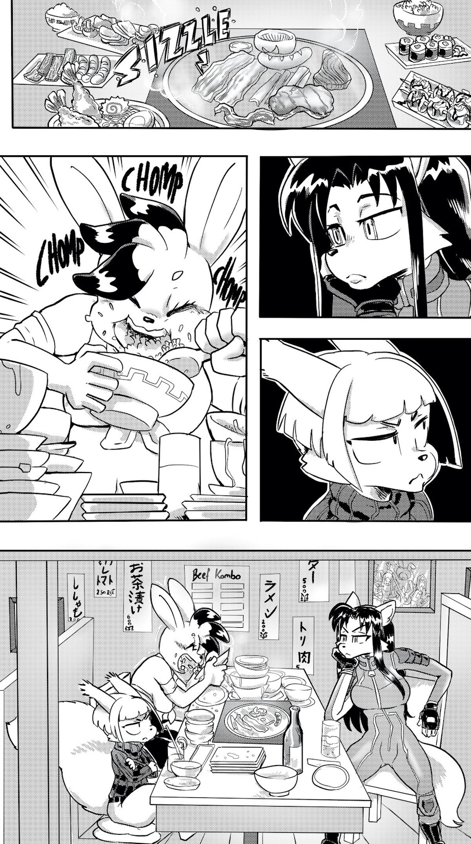 The epilogue also caught my attention. Shun Gonfano is alone and we finally meet Freydar. The pages are very meaningful. We finally find out why Shun is so antagonistic with Cookie despite having taken everything from her. He has nothing personal against her. It's Freydar who has it. She will only work with Shun as long as Cookie retires from furry fighting. I guess that explains why Shun goes so far to denounce Muko and Cookie. Still, I have to give him credit for not being scared of Freydar punching a glass hard enough to crack it besides his head. Freydar is as powerful and as scary as I thought. I wonder how powerful she is now and how powerful she was as a Combagal.
