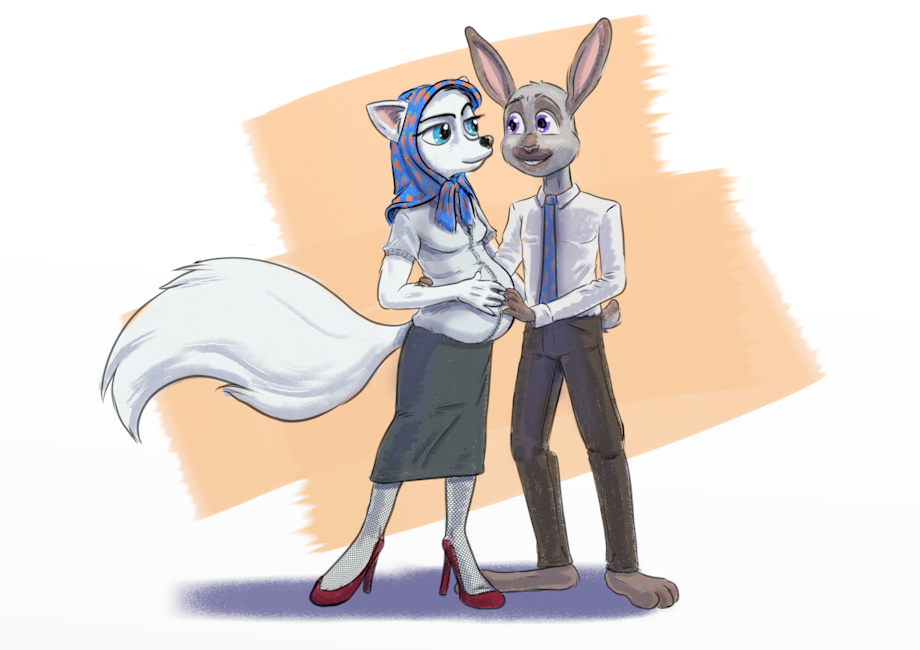 Here is a nice, casual, family photograph of the Bogo family, post-marriage. Oh yes, the chief was living with his lovely cheetah for a while. Mostly because marriage between predators and prey was... this kind of miscegenation wasn't illegal but it was functionally impossible given social backlash. That ended after Bellwether was caught and a new wave of cooperative friendship swept in, helped by Gazelle and Judy.