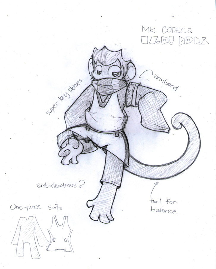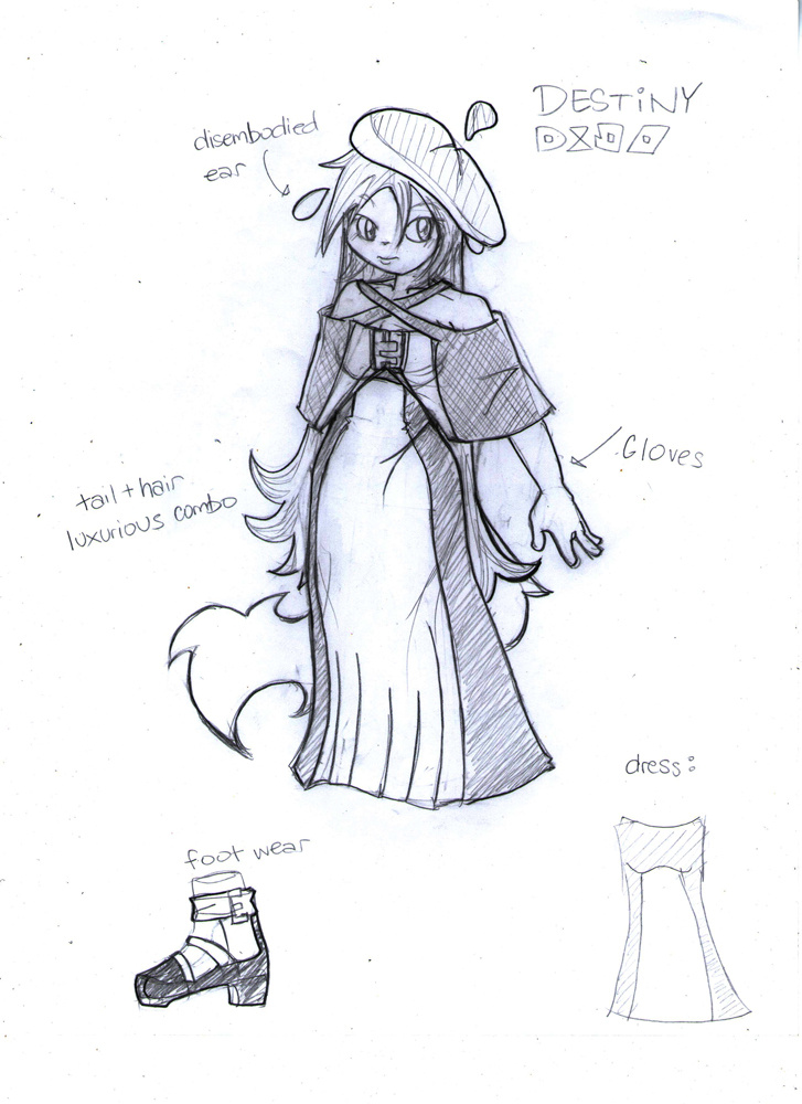 Sketches of anthropomorphic characters in arguably awesome RPG costumes.